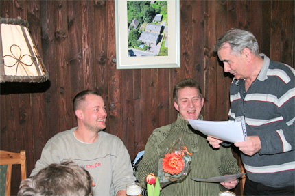 Mario Muhs (b.m.), Zugführer des Sanitätszuges, erhält aus den Händen des Kreisbereitschafttsleiters (r.i.b.), Werner Ziegenhagen, seine Ehrenurkunde und die Auszeichnungsspange für zehn Jahre Mitarbeit im Sanitätszug.