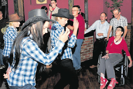 Inzwischen ist der Kleinbus aus Stralsund angekommen und Roland ein Stein vom Herzen gefallen. Seine Petra ist da! Eine scheue Umarmung. Dann schiebt er sie in den Saal, wo sie von Freunden begrüßt wird. Die Diskobesucher kennen sich seit Jahren. Manche waren schon zusammen im Kinderheim, in Pflegeeinrichtungen oder im Krankenhaus West. "Petra habe ich damals im Schloss Ralswiek kennen gelernt", sagt Roland. Er bedauert, dass sie nicht täglich zusammen sein können. Wegen des großen Pflegeaufwands habe Petra nach Stralsund umziehen müssen. Die Party im "My Life" kann beginnen. Schon beim ersten Titel ist die Tanzfläche voll, die Stimmung auch ganz ohne Alkohol ausgelassen. Die Idee, eine Disko für Behinderte zu veranstalten, hatten Anne Fedrowitz und Madlen Wiese. Sie arbeiten als Betreuerinnen im geschützten Wohnheim des DRK- Kreisverbandes Rügen und wollen etwas tun gegen die Ausgrenzung ihrer Schützlinge. Sie hatten gehofft, dass auch Nichtbehinderte mitfeiern. "Aber da gibt es wohl doch noch zu große Berührungsängste. Schade", bedauert Madlen, die aber ihre Line-Dancer, die "Island Eagles" aus Bergen, als überraschungsgäste mitgebracht hat. Sie werden reichlich mit Applaus belohnt. Dann spielt der "Holiday Party Express" live für die Diskobesucher auf, auch die Hits "Das rote Pferd", "Cowboy und Indianer" und leisere Töne.