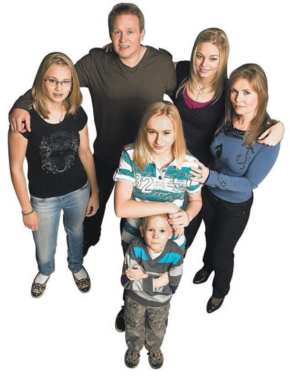 Ein Bild aus glücklichen Zeiten vor dem Unfall: Andreas Grohn mit Frau Kathrin (r.) und den Kindern Victoria, Vanessa, Nicolas und Julia
